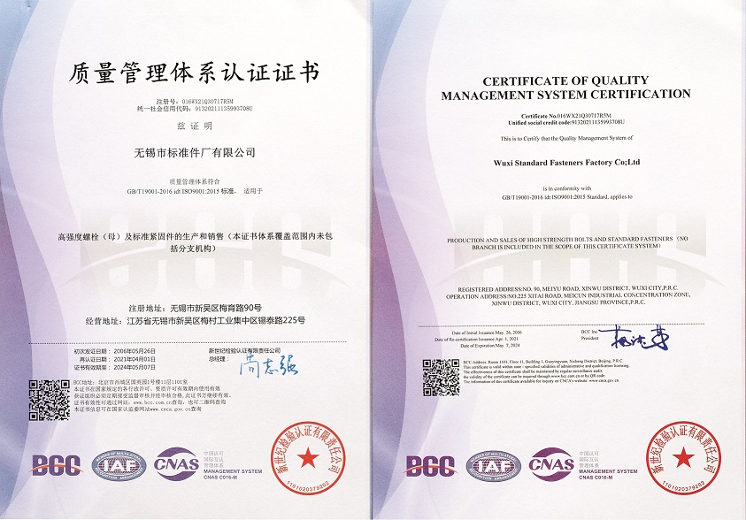 SAC/TC85紧固件制造者识别标志使用证书